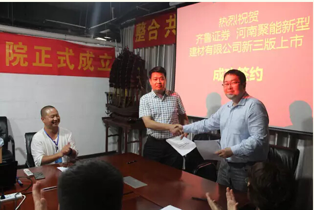 2015年8月1日,經(jīng)過前期的考察、調(diào)研,河南聚能新型建材有限公司與齊魯證券正式簽署合作協(xié)議,這標(biāo)志著聚能集團(tuán)“新三板”掛牌上市工作正式啟動(dòng)。